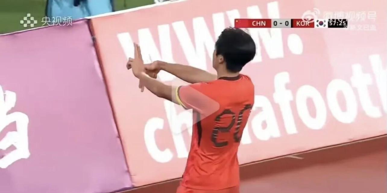 另外在U22国足2-0战胜韩国的比赛中,李镇全就曾比出过“以下范上”的手势。